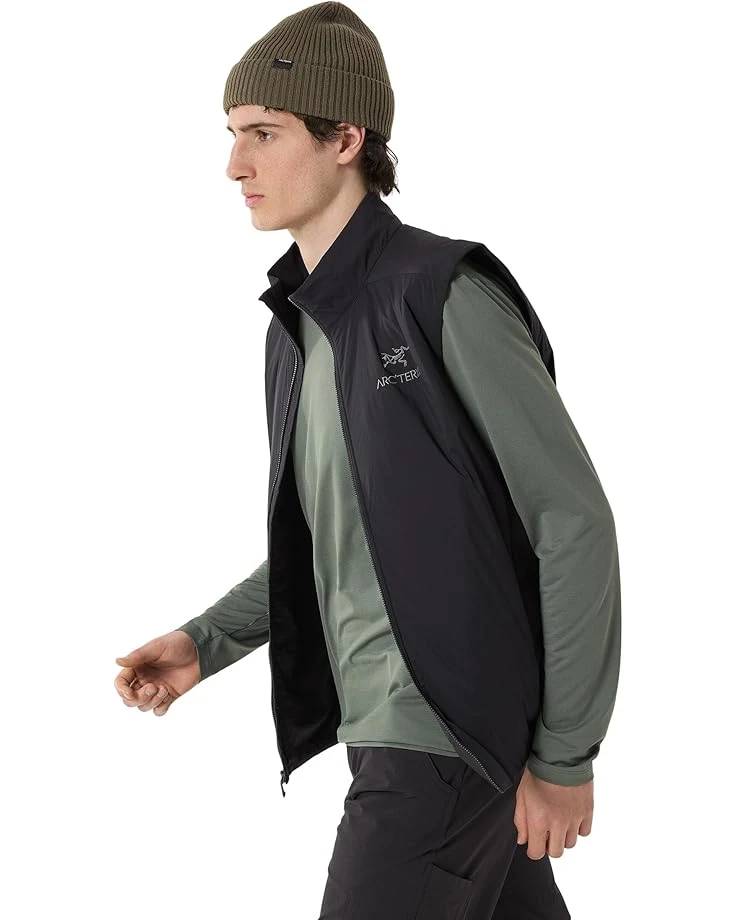 - The lightweight and versatile Arc’teryx® Atom Vest keeps you warm for a prolonged period. The moisture-resistant fabric keeps you feeling dry, the wind-resistant fabric keeps away wind chills, and the Coreloft™ 60 insulation offers cozy comfort. It comes witha mid-height collar, sleeveless design, and a full-zip closure.