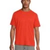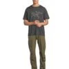 - Pullover T-shirt features crew neckline, logo at center front, straight hem, and slim fit throughout.