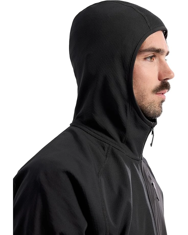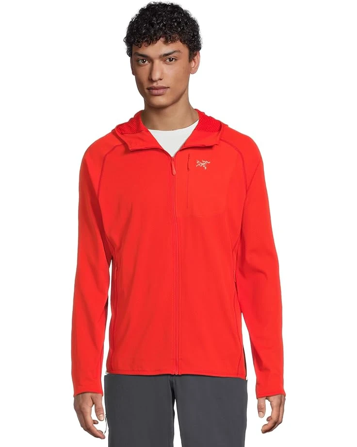 - The Arc’teryx® Delta Hoody features innovative fleece insulation that provides breathable warmth, is soft next-to-skin, and has a unique hollow-core fiber construction delivering an exceptional warmth-to-weight ratio. Its fleece’s construction creates a smooth face for improved durability while the zippered front closure ensures easy on-and-off and rapid ventilation. This zip-up hoodie is styled with long sleeves, a straight hem, and a low-profile scuba hood that adds warmth and protection. The elastic binding at the hood, cuff, and hem for a secure fit. Its flatlock stitching and minimal seaming improve comfort. Fitted with articulated patterning for mobility, comfort, and easy layering, this hooded jacket also comes with a chin guard that protects the chin and neck from chafing.