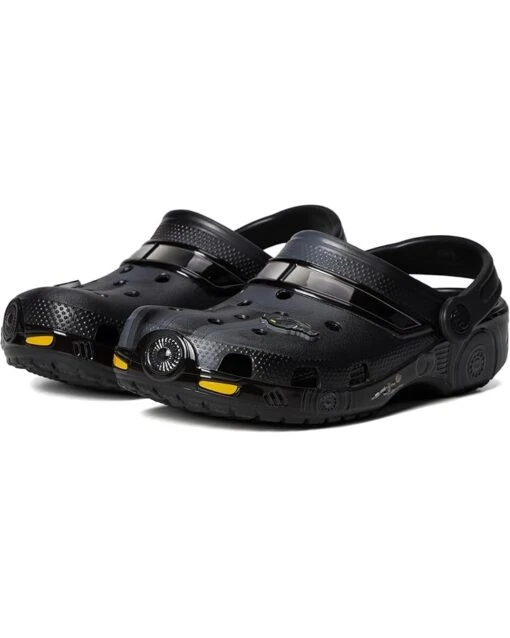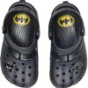 - They may not come with a cape, but your little one will feel like saving the world wearing the Crocs® Kids Batman Batmobile Classic Clogs. These clogs feature cool superhero graphics and are sure to become your little one’s new favorite go-to shoes for school, play days, and adventures of all kinds. The iconic lightweight comfort keeps your kid’s feet comfortable while the ventilation ports enhance breathability and quick water and debris shedding, making them the perfect water shoes. They are made of an EVA upper and insole. These breathable slip-on clogs are easy to take off and on while being extremely durable.