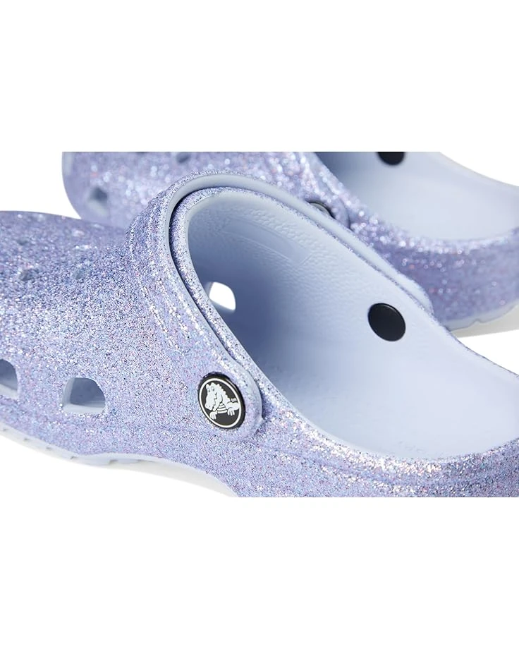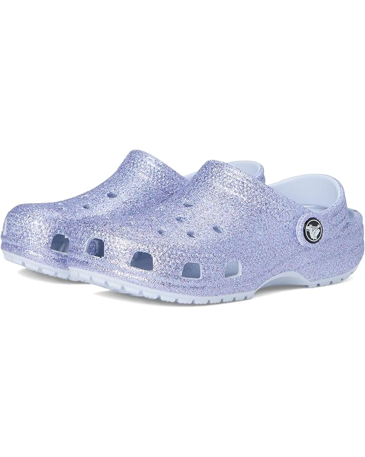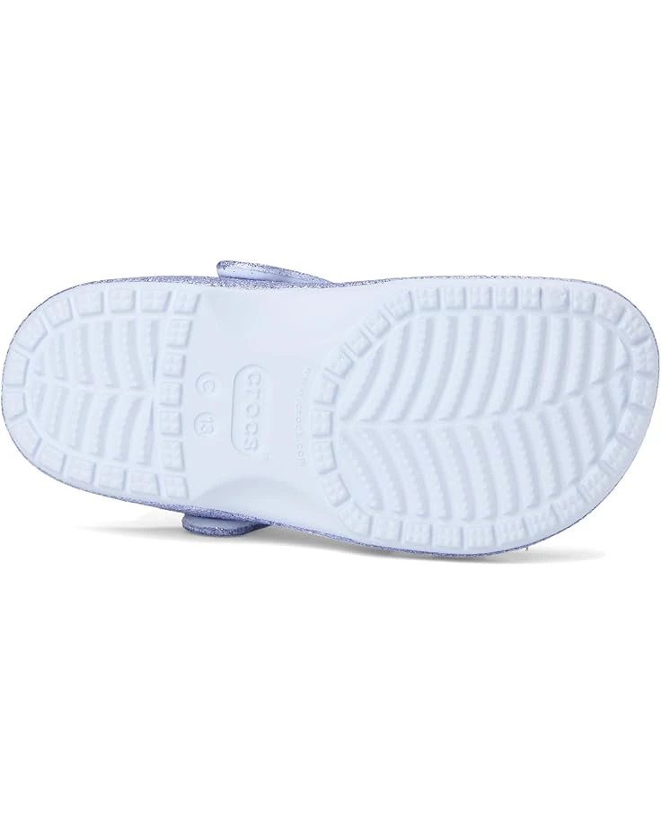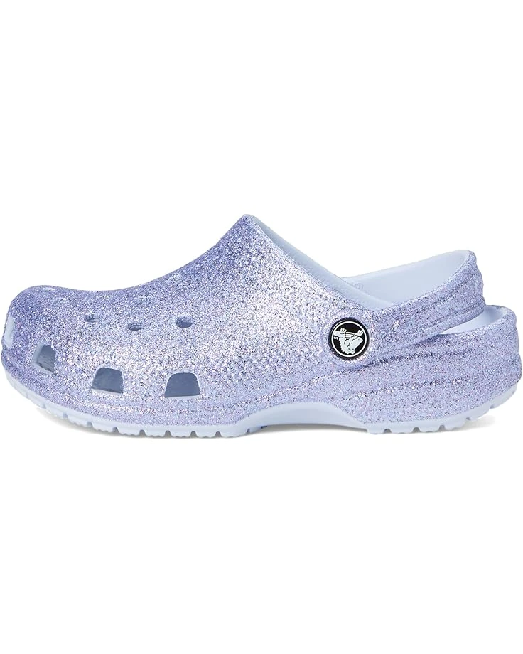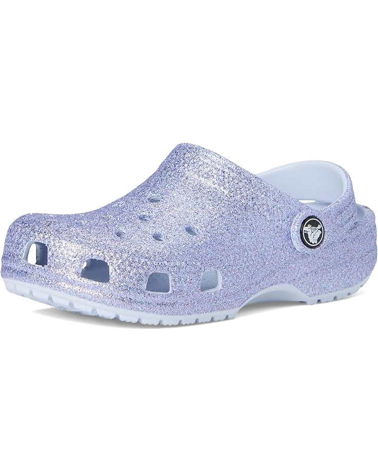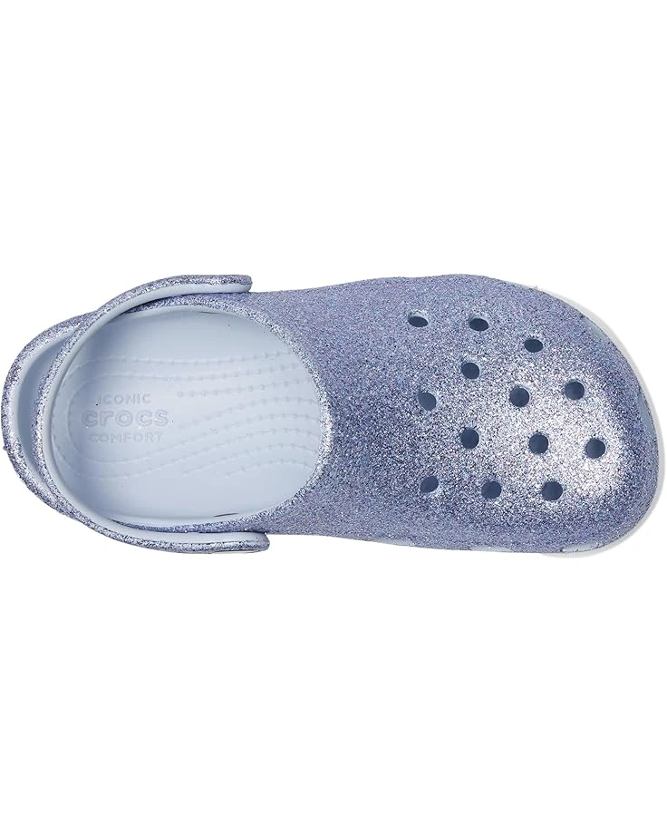 - Experience lightweight 360-degree comfort and good flexibility wearing Crocs™ Kids Classic Glitter Clogs, that perfectly accent your little ones outfits with their sparkly detailing. The waterproof clogs are expertly crafted with an ethylene vinyl acetate upper with holes for breathability, ethylene vinyl acetate insole, and slingback strap for a secured fit.