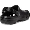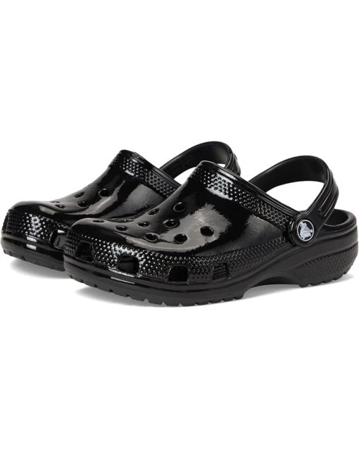 - Get the best of both comfort and style effortlessly wearing the Crocs® Kids Classic High Shine Clog that comes with a stylish super high shine new treatment, pivoting heel straps for a more secure fit, customizable with jibbitz™ charms, and iconic crocs comfort™. The clogs feature a round toe shape, ventilation ports that add breathability and help shed water as well as debris. These are crafted with a lightweight and flexible construction featuring a thermoplastic EVA upper, lining, and insole.