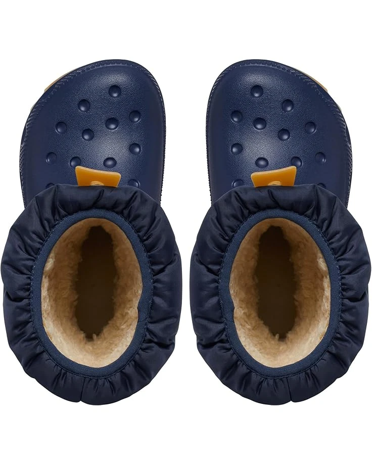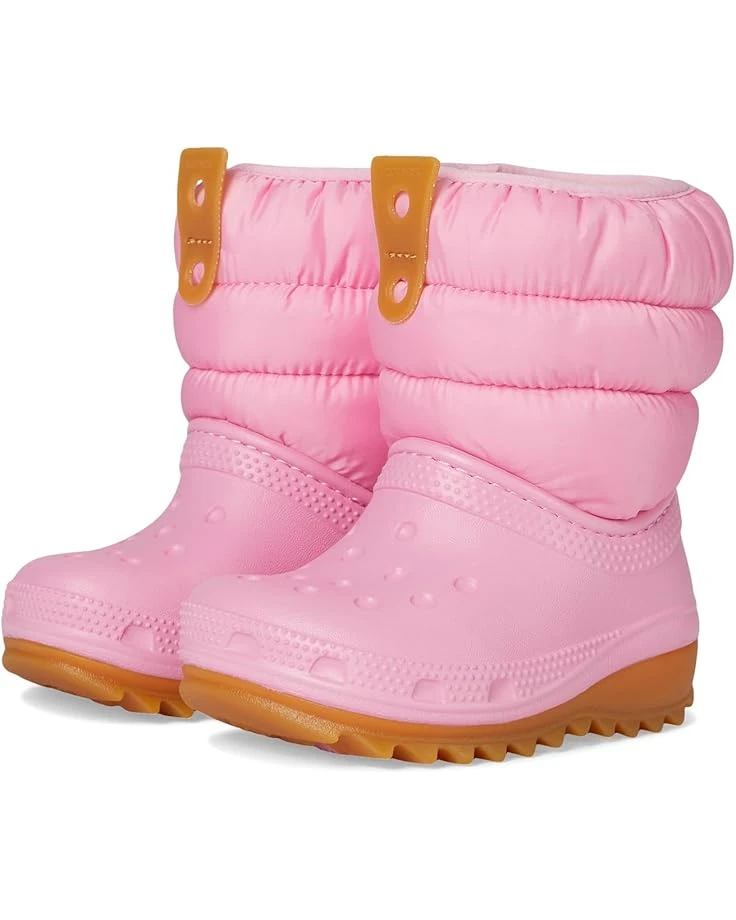 - Your little ones will be more than ready to weather the cold winter months in these cozy and comfortable Crocs® Kids Classic Neo Puff Boot. They’ll enjoy a polyester upper, faux fur lining, insole, puffy insulation around the ankle perfect for tucking in their pants, and a marbled rubber outsole for added traction. Let them pick their favorite color and even add Jibbitz™ charms for a little more personalization. These are sure to be their new favorite boots.