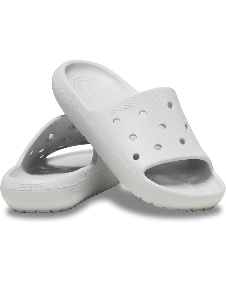 - Comfortable and easy to clean, the Crocs™ Kids Classic Slide V2 is incredibly lightweight. It features an open round toe shape, thermoplastic EVA upper with holes with breathability, and an easy slip-on style. The crocs are crafted with thermoplastic EVA lining and deep cupped croslite™ foam footbeds for 360-degree comfort.