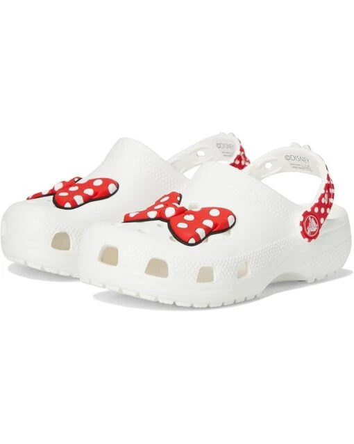 - A classic-themed design with bow tie detailing on the upper accentuates the look of the Crocs® Kids Disney Minnie Mouse™ Classic Clogs.