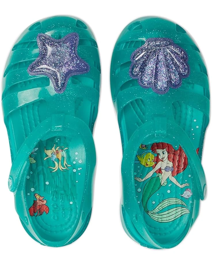 - Sparkle into adventure styling Crocs™ Kids Disney Princess Isabella Glitter Sandals! Delight in every step with TPU upper, an open-toe design for endless play, and a custom fit thanks to hook-and-loop closures. Keep their smiles glowing with fixed charms on the front straps, ensuring each day is filled with magic and comfort.
