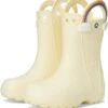 - Now kids can enjoy classic Crocs™ comfort – even on the rainiest days. This kids’ rain boot with a waterproof build keeps puddle-jumping feet cozy and dry. Plus, oversized handles make them easy for kids to put on and take off.