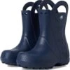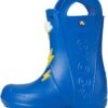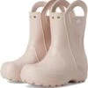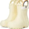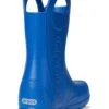 - Now kids can enjoy classic Crocs comfort – even on the rainiest days. These Crocs® Kids Handle It Rain Boots with a waterproof build keeps puddle-jumping feet cozy and dry. The oversized handles make it easy for kids to take these boots on and off, and they also include a reflective heel logo for safety. This version features a fixed rainbow embellishment and squishy EVA clouds. The calf-high boots are crafted from EVA upper, insole, and outsole. These girl’s and boy’s rain boots are a parent’s dream – a simple wipe or rinse, and they’re good as new!