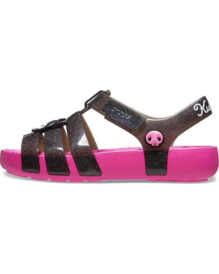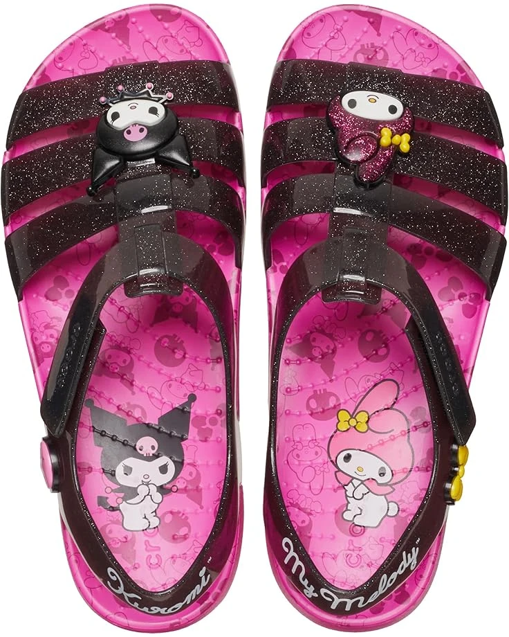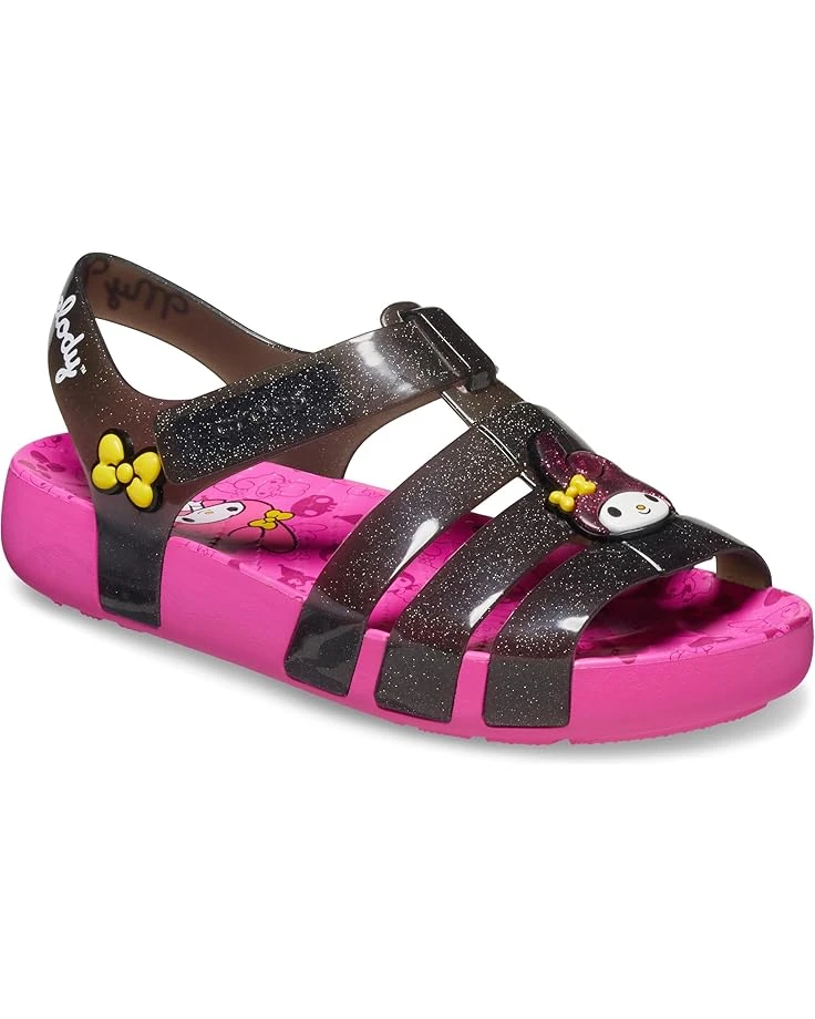 - Step into fun and comfort wearing Crocs™ Kids Sanrio Isabella Sandals! These adorable sandals feature a thermoplastic polyurethane (TPU) upper for durable, lightweight wear, and an ethylene vinyl acetate (EVA) footbed and outsole for cushioned, all-day comfort. The hook-and-loop closure ensures a secure fit, while the open-toe design keeps little feet cool.